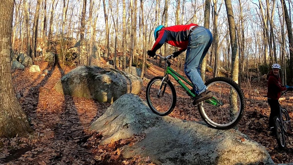 This ride started out rough, and didn’t get a whole lot better (ever have one of those days?). We thought this ride was going to end up as an hour-ling video of fails. I didn’t even bother turning the camera on until about 30 minutes into the ride, since we were still warming up. Then the first line that Tony and I tried, I spent probably 15 minutes on it before sort of getting it: old, cold, and out of practice.