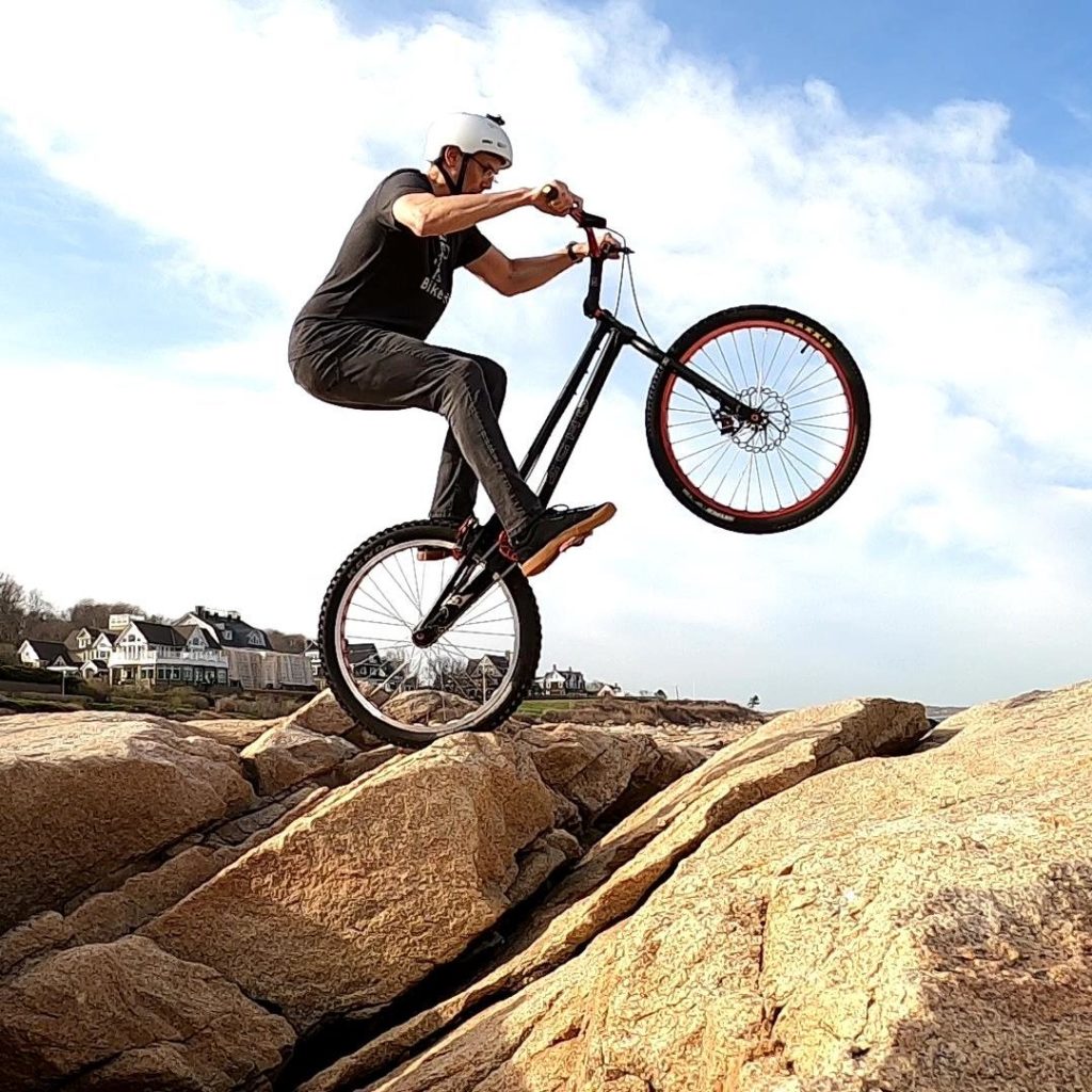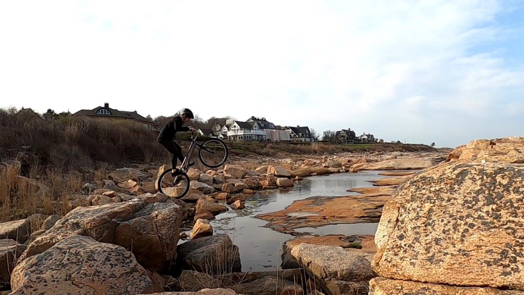 In one of the clips you’ll see in the video, I was on the Eastern side of Mike as he tried hopping up onto a boulder, having a bit of a struggle that was not what I expected. But then, since I didn’t want to film facing West, looking into the sun, I went to the West of Mike. As I crossed over the spot that he was using to take off with his static hop, I noticed how absolutely disgusting the rock was. It was an absolutely jumbled mess! Suddenly it was crystal clear why he wasn’t just flying right up on the 1st (or second) try. In the video, you can’t really see how nasty that takeoff is until I go right up to it with the camera. If you’ve ever tried to rear wheel hop on any surface that isn’t smooth and homogenous, you know how hard it is – every little imperfection wants to push you off-balance. So, keep in mind when you watch someone doing a trials move on video, the conditions could be much more challenging than is readily apparent to the viewer. This line that Mike chose was pretty impressive.