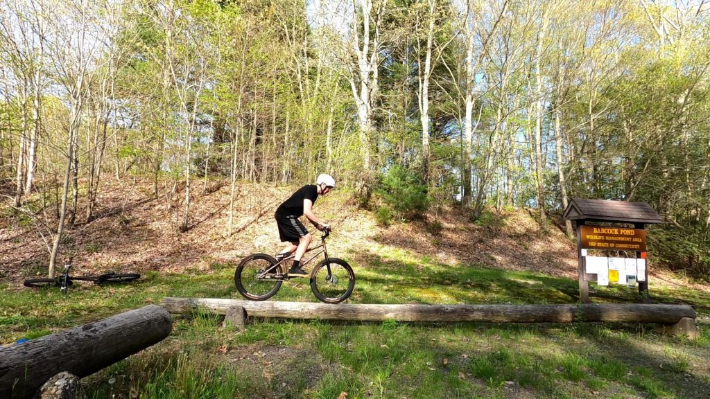For several years, I have been driving past a park that has an abundance of horizontal telephone poles cradled in concrete “saddles” to mark the parking lot boundaries, just screaming at me to be ridden. I kept eyeing this spot, constantly telling myself that one day I needed to ride there. Usually when I’d actually remember that I should there, it would be wet and slippery, so I kept putting it off. Well, I finally did it: the other day, I actually decided to give it a shot.