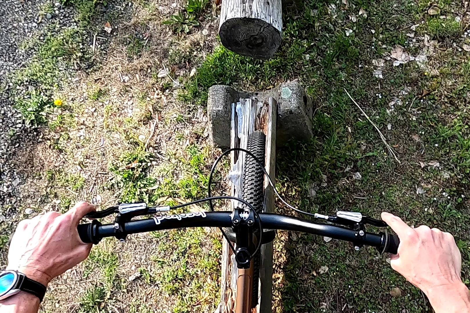 In addition to struggling on these skinnies, it was also nerve-wracking on some of the lines since they were so close to the road, where cars are screaming by at 50 miles per hour (or more). Plus, after quite a bit of struggling on the lines further from the road, I was a bit self-conscious, after being humbled repeatedly. However, despite all the struggles, it was a fun ride and good practice. I’ll definitely need to come back again. I’d also like to try some of these lines on my competition trials bike, to see if I can do any better on that (subsequent to this session, I finally replaced my damaged crank).