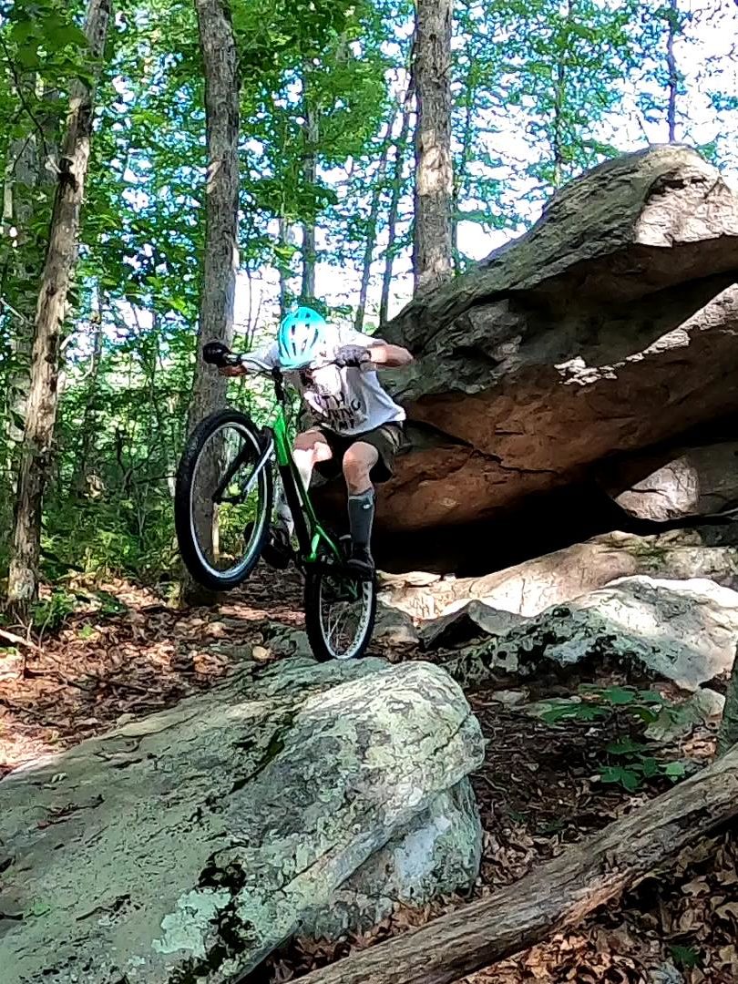 Jim and I rode our trials bikes on some rocks in the woods this week. It was definitely a struggle-fest. The mosquitos were relentless. I could not seem to keep my feet on the pedals and neither one of us had our mojo. But you know what? We were still in the woods riding our bikes!