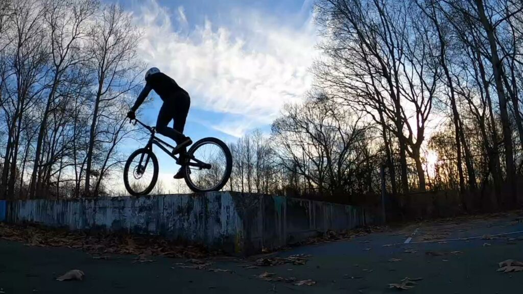 Finally we spent the last remaining minutes of daylight riding up / on a skinny concrete wall. This wall usually kicks my but, but I was actually able to get up after several tries. However, I was not feeling confident enough to drop off, though it’s completely within my capability. When you’re “not feeling it”, it’s a good idea to not push it. Of course Ryan just bunny hopped right up. I really need to work on my pedalups (and bunny hops).