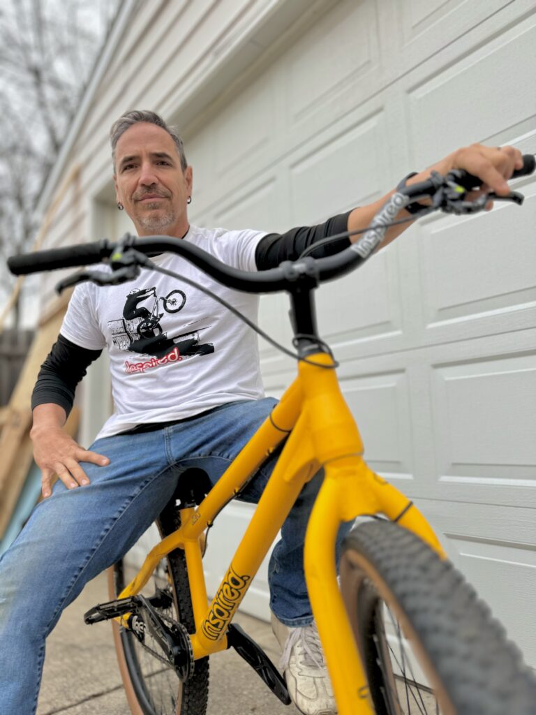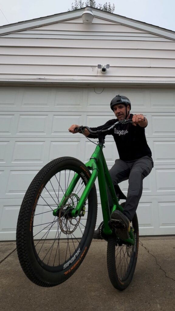 I originally discovered trials back in 2009 when I saw Danny MacAskill’s famous video. His 2009 Inspired Bicycles video randomly popped into my YouTube feed. I called to my wife and said, “this guy is riding the way I have always wanted to ride.” I didn’t start trials seriously though until many years later. In between, I was trying out road riding and got seriously into mountain biking at the end of 2016. Then in 2020 is when I realized street trials was my thing. So I was 47 when I started learning. I was also finally able to afford a proper bike, which was very important for my progress and confidence.