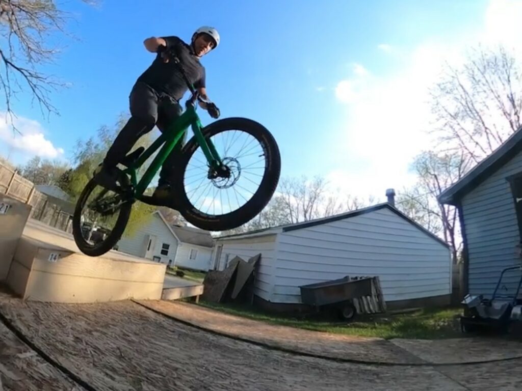 It’s hard to answer that. In my mind, I believe I am a street trials rider, but in reality I don’t see myself riding in an urban setting. This is mainly because I don’t want to be that guy who gets a ticket (while I am learning) knowing that I am gonna break a bench or damage public property. So in reality, I am that guy who builds wooden obstacles in my backyard. (Thank God my wife lets me do that and the neighbors don’t complain). I have a love for boulders and walls, but those are hard to reproduce for practice and hard to come by in my area of Michigan. I also enjoy stairs, loading docks and chest-high park or landscaping walls.
