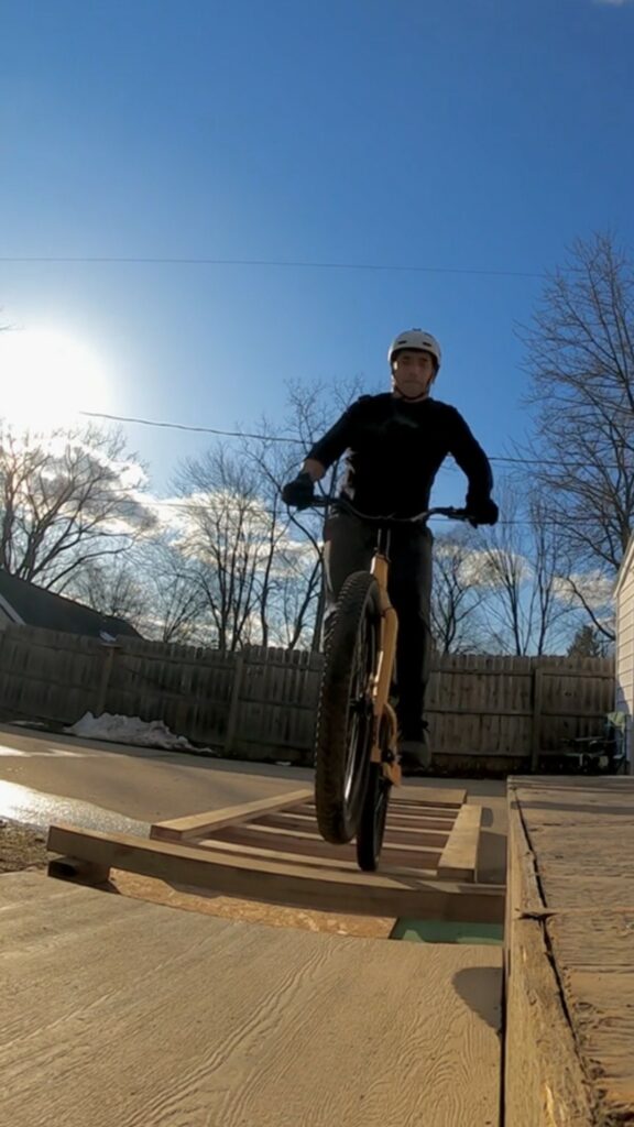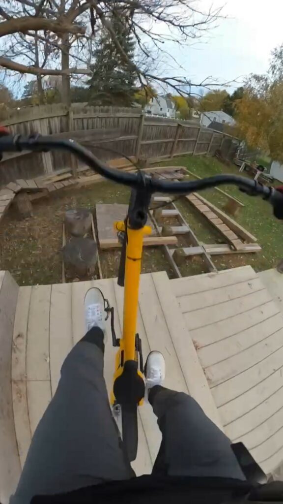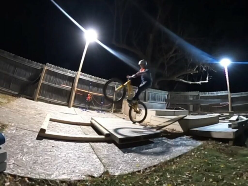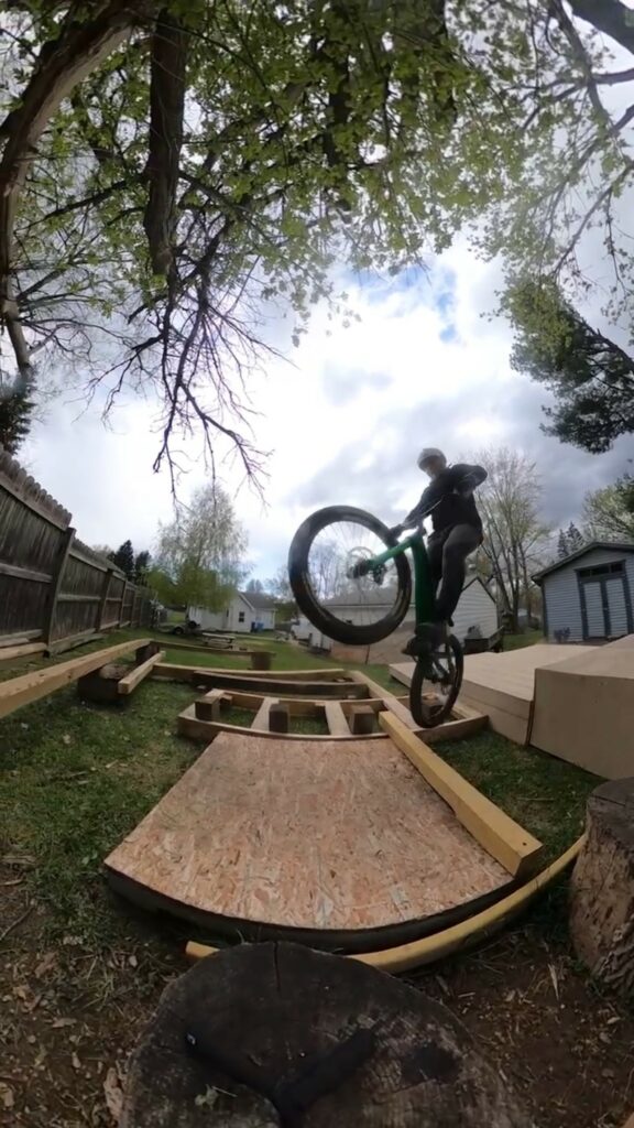 I am definitely lucky to be able to have the backyard setup that I do. I built it with a plan for growth. There are still many lines in it that I haven’t mastered yet. I would love to expand and make it more like a park setup where I had more room for friends to join in with more beginner-friendly features. My favorite features are the multi-level platforms so I can practice bunny hops, side-hops, 180’s and… hopefully 360’s.