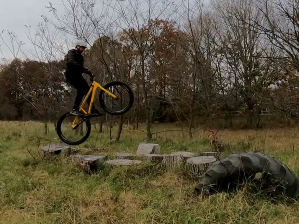 I ride trials and mountain bike. I tried road and gravel riding for a while but I found it pretty boring. I still enjoy mountain biking and we have an awesome community (EPIC Mountain Bike) in Lansing, Michigan and we have weekly group rides. Riding trials has definitely improved my mountain biking skills. Although I can go fast and I could keep up with the leaders in our group, I don’t care much for the speed. I’m always looking for a line or a spot to stop and session a boulder, a log-over, a natural feature or a technical climb or descent. I am always looking to improve my technical riding skills.