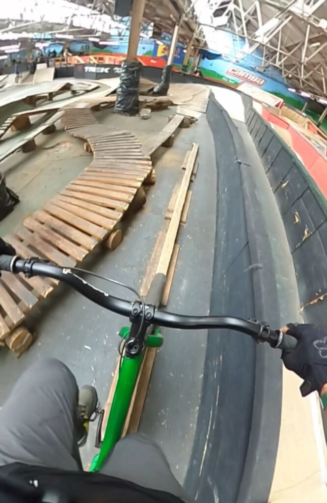To be honest, I don’t ride as much as I would like to, either because of weather or work. I don’t have a set routine, but I try to practice for about an hour and a half, three nights a week (on a good week). My routine is about getting my camera set up so I can learn or perfect a new trick. I’m definitely riding for fun and the challenge, but It is great to watch my videos. Even though the progress is slow, it is gratifying to see. I enjoy making edits and watching others because it is cool to show my friends and family that I’m not the only one out there doing sketchy stuff on bikes.