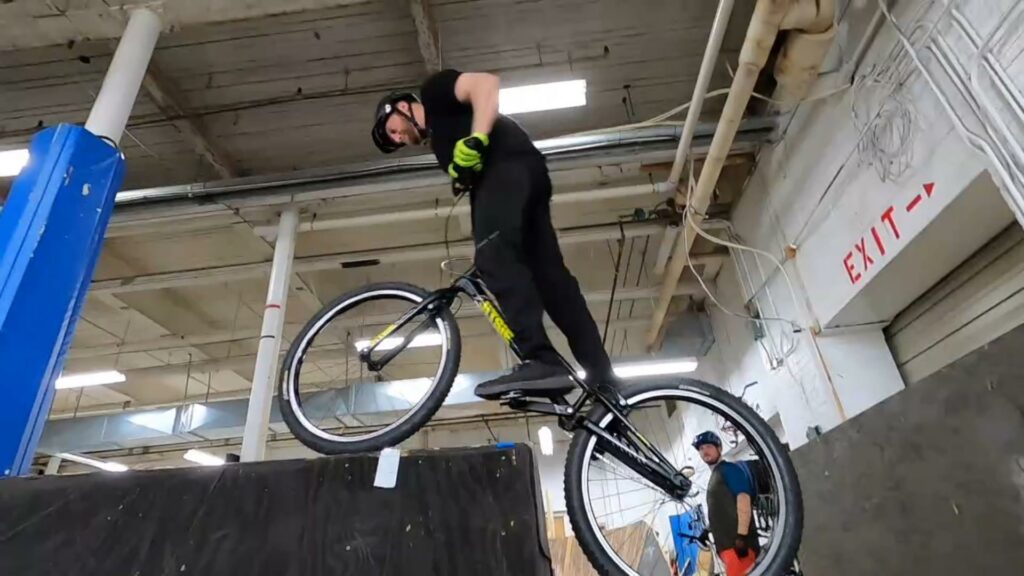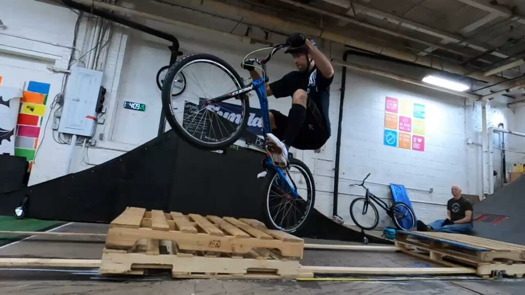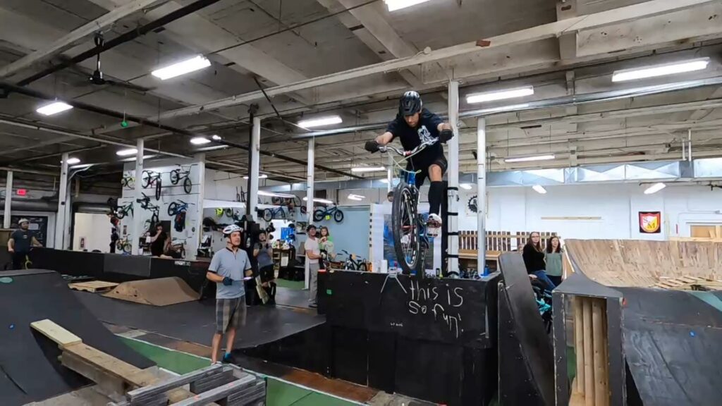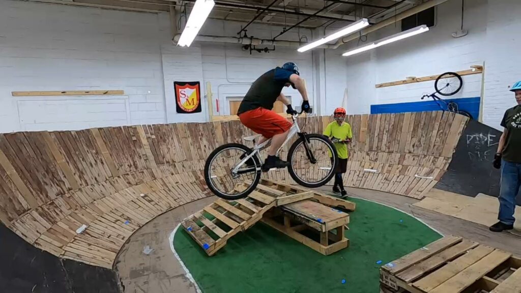 As mentioned previously, Casey and the crew at the Ramp Room were extremely accommodating, generous, and amazing to work with! They are running the Ramp Room out of pure passion for biking and the biking community. They’re not in it to make a fortune (though they certainly deserve to – it’s a lot of hard work!). They’re doing it because they are on a mission to provide a place for people to hang out and ride – and in particular for our young people. In order to do that though, they need to at least make some money (rent for the facility ain’t cheap, and you gotta feed your family!). I absolutely have no qualms with that whatsoever. The only reason I even bring it up is that because they are a business, they can’t afford to operate at a loss. That means we needed to have a minimum number of riders register for the event. Therefore, the pressure and difficulty in getting riders to commit and register was even harder than normal. And as the second item says, not only are there only a small number of trials riders in North America, they are spread across an enormous continent. It also meant that they could not really afford to shut the facility down a day or more in advance to store and set up the course since that would mean day(s) with zero income. It’s absolutely reasonable, but it does make it very difficult to build anything more than simple obstacles. Fortunately the existing ramps and other features could be used for trials… though mostly for the expert riders.