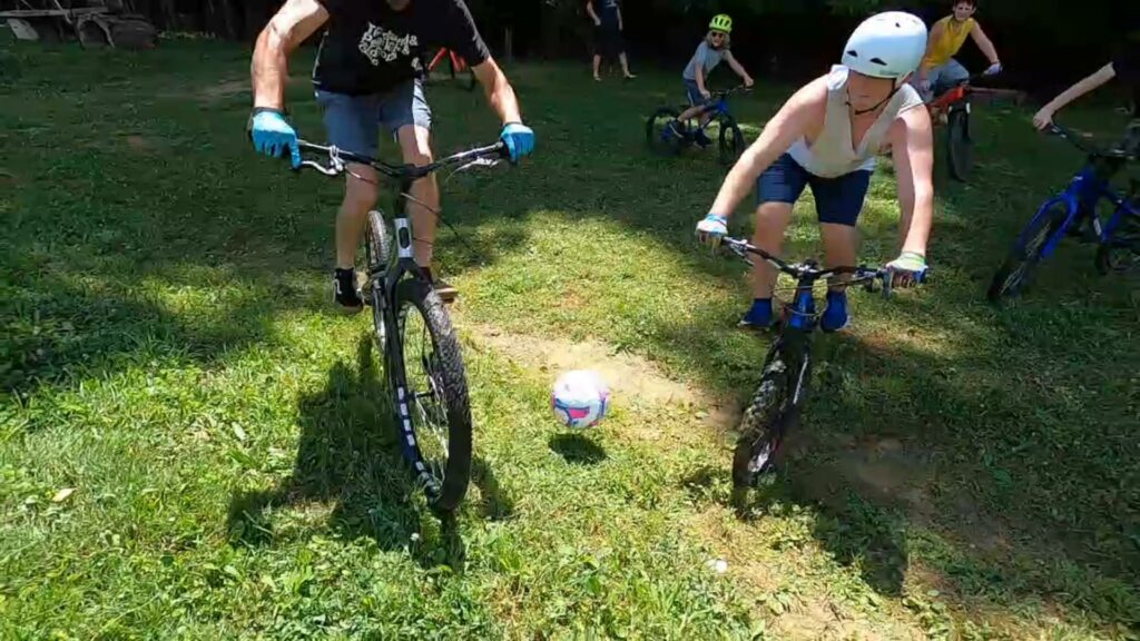 In footdown, the objective is to ride around in an area that gets progressively smaller without putting a foot down. The last one to put a foot down wins. The soccer is pretty much what you would expect. You can hit the ball with your foot or bike, but if you put a foot down you need to go all the way back to your end of the field before coming back to the ball. As in traditional soccer, the team with the most goals wins.