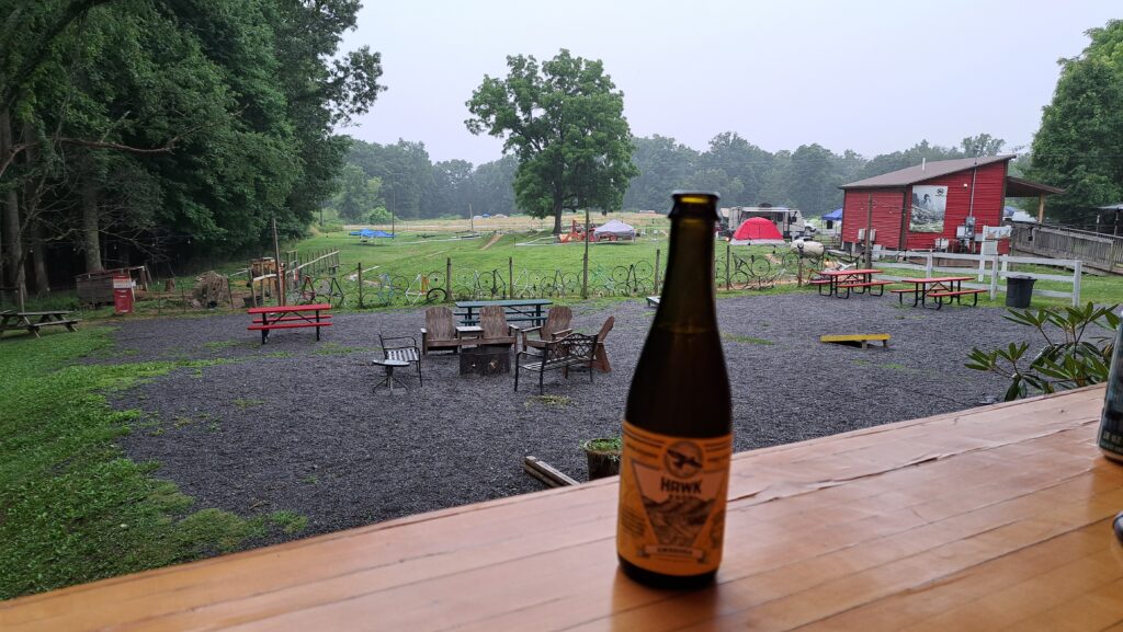 The ticket for the trials competition included onsite camping in the field, just a stone’s throw from the trials competition, making it really convenient. Online registration for the event (with the optional camping) meant all we had to do was just show up. Coffee shops are just a few minutes drive to downtown, which was a huge bonus. And the Arrowhead Bike Farm includes a restaurant that serves lunch and dinner, as well as a selection of beers and hard ciders – some of which are relatively local. To keep things simple, we ate meals at the Bike Farm, except for the morning coffee runs, which totally hit the spot.