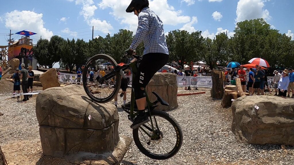 I met Ryan Bratton at the 2022 North American Trials Championship (NATC) during the Bentonville Bike Fest. Watching him riding the expert sections of the course on a mountain bike blew my mind! Sure I’d seen Danny MacAskill and Ali C doing it on YouTube, but it’s another thing altogether seeing it in person.