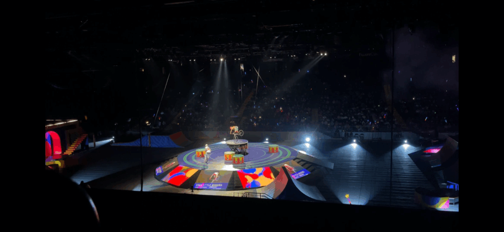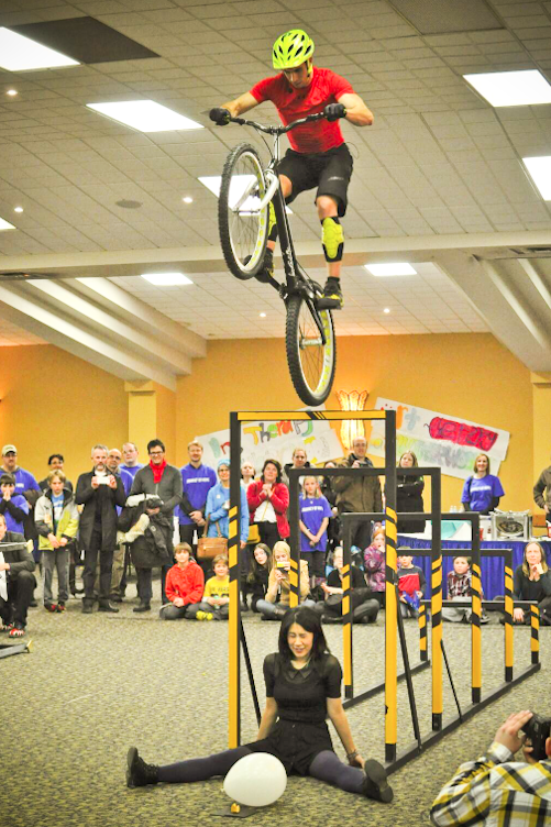 Trials is an incredible workout, as such you need to maintain a solid physical state if you want to go the distance… Good posture, strong pushing and pulling muscles, good flexibility, and healthy living. Being dedicated to this is one challenge, and the other I would say is stage fright. Each night, you need to make everything perfect, and some shows you have nowhere to accurately warm up… Perhaps it’s a small dark hallway… Perhaps it’s for 20 minutes before the public enters the theatre… perhaps it’s outside where it’s 90 degrees and sunny, then you have to perform inside under the lights and darkness… But nothing quite feels like the pressure of performing for 2,000 people, watching you hopping around on your bike. You need to find the fun, and have a laugh every time you step on the pedals before the show starts.