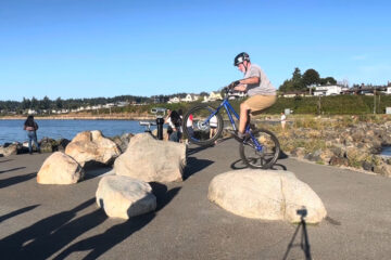 Small rocks, particularly ones with varied surfaces, provide great low-consequence bike control practice. They provide a great challenge for rear wheel moves.